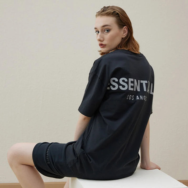 Summer Essentials Men's T shirts Cotton LA Letters Reflective High-Quality Hip Hop Top Tee Oversized Unisex T-Shirts